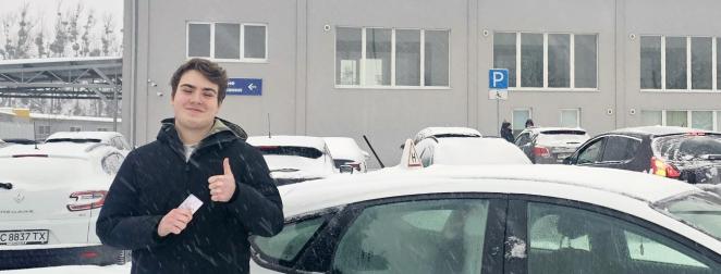 Вітаємо Максима з отриманням посвідчення водія! Тепер йому не страшна жодна погода, адже той, хто навчився керувати взимку, впевнено почуватиметься на дорозі будь-коли.